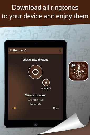 You are now in the Play Store available to download our new guitar ringtones application. Download it right now and enjoy all the content. It has an excellent collection of ringtones just choose your favorite ringtone and customize it on your Android device to use them either as ringtones, SMS tones, alarms or notifications.