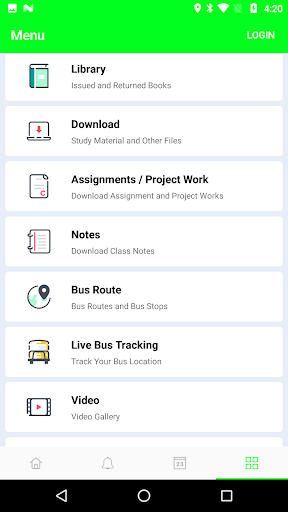 - School/College Calendar to get information on academic days, holidays, celebrations, exams, vacation & all important dates.