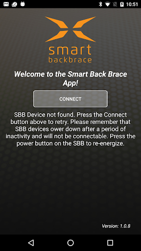 The Smart Back Brace (SBB) is a posture correcting device. It improves your posture by pulling your shoulders back. This app will allow your Android device to connect to device and control various settings. The smart electronics in SBB can accurately tell when you are slouching and then warn you to stop doing it. We have designed the SBB to be as comfortable as possible. The straps are made to curve around your shoulders and back. Very soft padding at the bottom of the straps will protect your body from belts cutting into your bones and underarms. This gentle, yet firm, grip makes SBB the most effective in pulling your shoulders back. Coupled with state-of-art sensors and electronics the SBB will monitor your posture quality continuously. At the first sign of slouching, it will vibrate to let you know to straighten up.