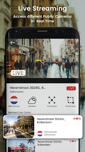 Live Camera is a free app to see live video from thousands of public webcams nearby in the streets of your city and all around the world. View people activity, animals, auto traffic, cities, weather conditions on biggest database of live real time streaming surveillance, security, safety network web cameras worldwide. Cool webcam viewer to watch familiar places as well as every new Earth place, discover interesting travel destinations on internet IP cams!