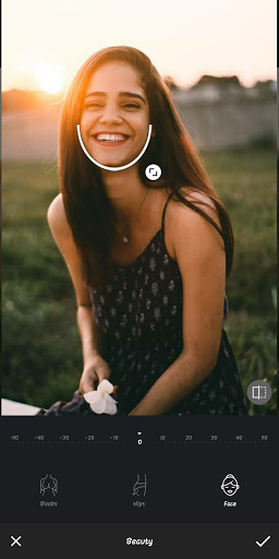 - Adjust your face shape, buttocks, hips as needed, add beauty filters to create the perfect beauty photo.