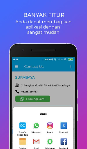 b. Link Kontak : pengguna dengan satu klik dapat terhubung dengan akun perusahaan seperti whatsapp, email, phone dll.