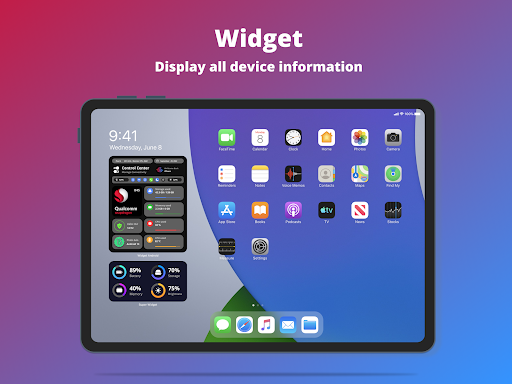 - Widget supports: Control center, memory, battery, network, and storage