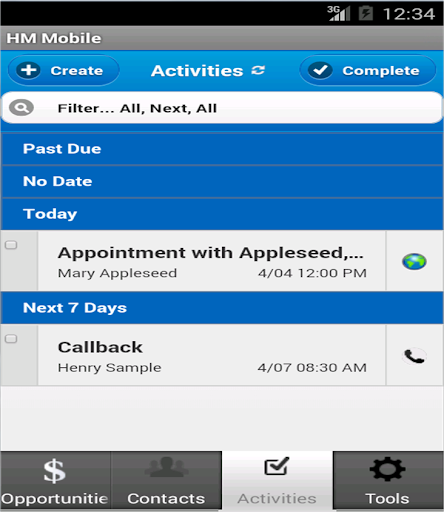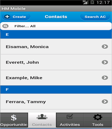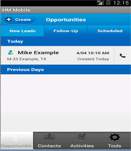The HM Mobile application enables HealthMarkets Insurance Agency agents to manage and act on leads for potential customers. The HM Mobile application provides agents the ability to remain productive by working their leads while away from the office. The agent can view current open opportunities, contacts associated with those opportunities, and perform related activities.