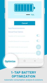 1-Tap Battery Optimization: Simply hit the Optimize button (within the app or from home screen using the battery saver widget), and wait for the process to finish. It automatically analyzes your battery power consumption, kills unused tasks, and delivers you with more battery power.