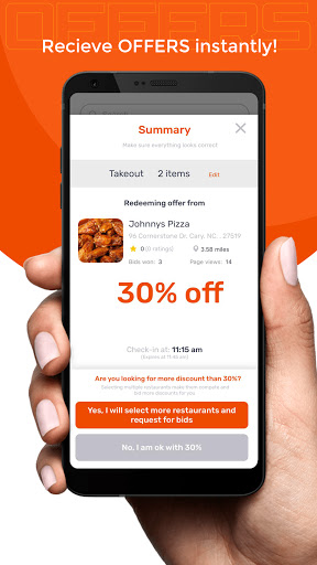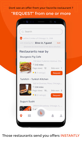 Using the app, eliminate the awkward hassle of searching for & redeeming dine-in & take-out deals using instant bidding technology at the restaurants you want to enjoy within minutes.