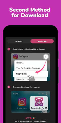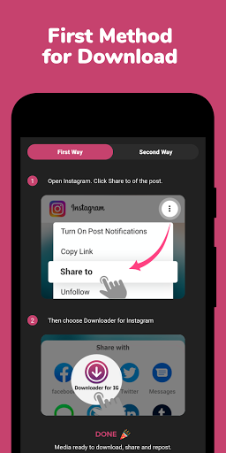 It's now easy to download any Instagram post you want to share again. Just copy the link and open the app. Leave all the rest to Downloader