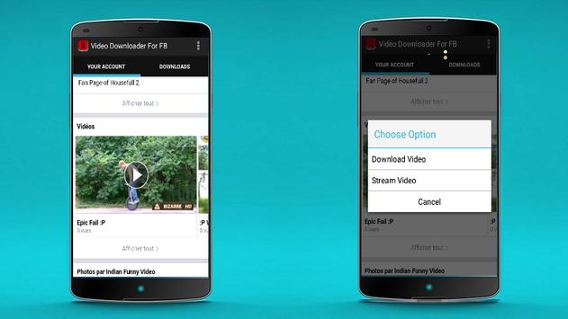 with Facebook Video Download you can Download Videos for Facebook, Videos that you like the most and you can not find them in other social networks, with this application you have the option of Download, pause and resume your Downloading videos as you can manage them into your library like delete unwanted video files to free your storage.