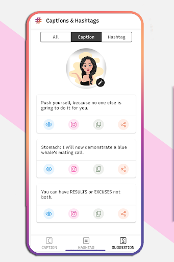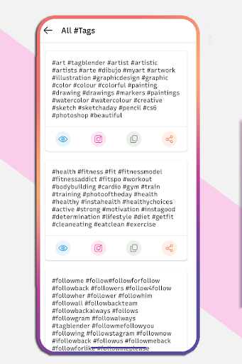 This app will assist you to extend "likes" of your photos, posts and their rating. Just copy and paste necessary hashtags. it's all popular hashtags, implemented convenient search. you're ready to add your own tags, mix them with existing and save them during a separate card for reusing. The app features a hashtag generator, which helps to get a hashtags set.