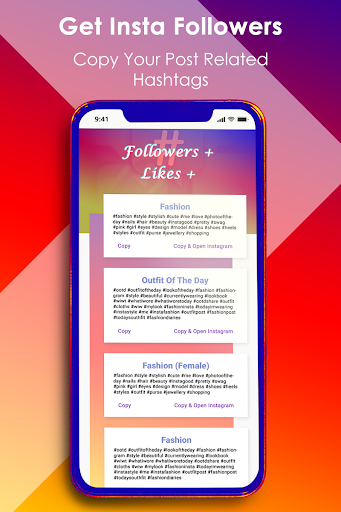 Get Real Likes & Followers for Social is an app help increase likes and follower for your Facebook, Twitter and Instagram account. Add the most relevant hashtags to your Instagram, Facebook, Twitter posts to make them visible so you may get more likes.