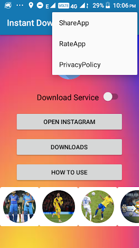 Image and Video Download for Instagram and send the image and video instagram and also other social network also.Images are also setup in wallpaper.