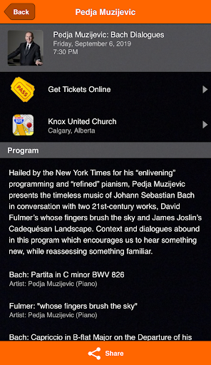 Listen to selected Pedja Muzijevic live recordings on your mobile device. All repertoire information including composers, works, soloists, conductors and ensembles is included. View artwork and program notes. High quality audio options are available if you are connected through a high speed network.