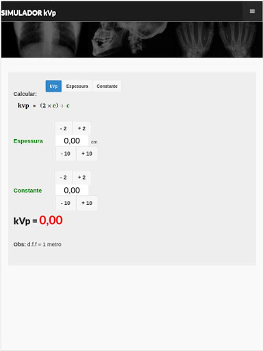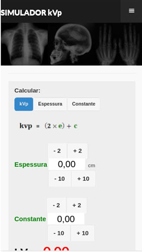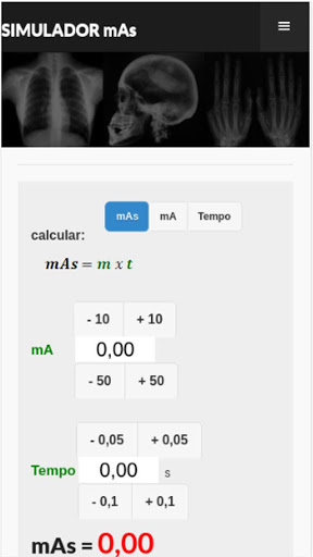 Com o Simulador RX Cimas você poderá calcular facilmente kVp e mAs, no estudo das técnicas radiológicas. Ideal para estudantes de radiologia.