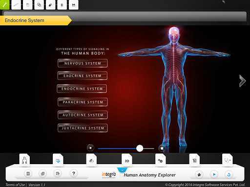 Human Anatomy explorer targeted for K12 students that explains clearly about the 10 anatomical systems with ground breaking 3D animations that covers global syllabus. The students will be more engaged when learning through highly interactive and fully visualized application. The interactivities assure better involvement to the students in learning the complex anatomy in an easy way. This app will be very helpful for the secondary and higher secondary school teachers to guide the students and improve their skill more and more than ever.