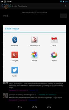 You can find opinion of people about a topic or trend or a brand by searching that. Finally app lets you share the report as bitmap.