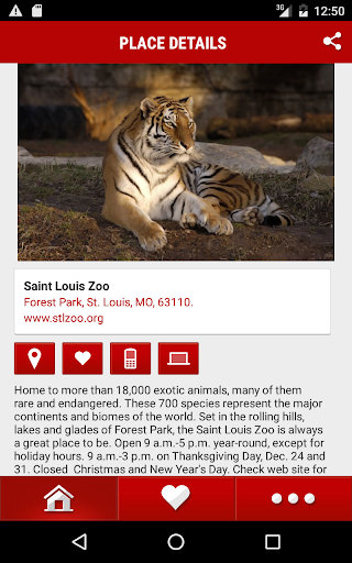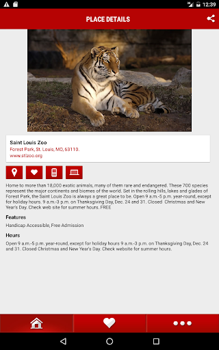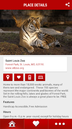 With a quick search, Explore St. Louis displays results nearest you first. Once you find what you’re looking for, add items to your Favorites and save them for later! Users can also get directions, call the location and access their website straight from the app.