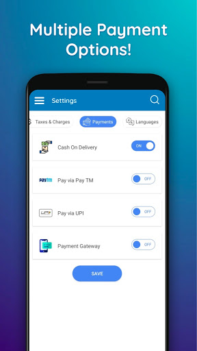 •Payment options - Take payment form your customers with COD, UPI or credit or debit card using our payment gateway with easy settlement.