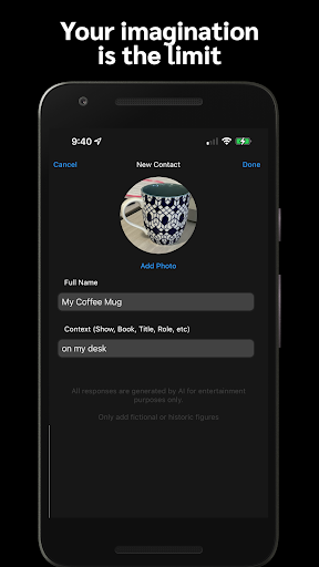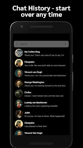 AI Messenger uses the revolutionary language AI behind ChatGPT (GPT-3) to simulate conversations with any historic figures, characters from movies or shows, or your favorite fandom - even inanimate objects! Chat with anyone or anything your imagination can conceive of. Whether you want to have a casual chat with Sherlock Holmes or a lesson on general relativity from Albert Einstein, AI Messenger will provide you with engaging and entertaining life like conversations.