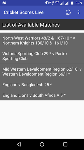 This app provides ball by ball cricket score updates for Indian Premier League (IPL), domestic, international and other league matches. A simple and efficient interface ensures that the app works incredibly fast on a wide range of devices. App's UI is optimized for both Phones and Tablets. Refresh button is provided in the top bar itself for easy refreshing of matches/scores.