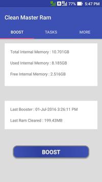 Clean Master Ram makes your phone more faster, by cleaning the junk files in your device and cleaning the ram.