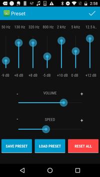 빠르기, 볼륨 및 이퀄라이저를 이용한 밴드 주파수별 음량까지