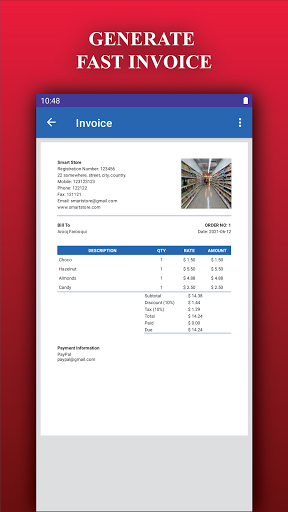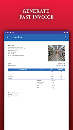 Invoice from a specific order can be created from the order screen in the store manager. You can print, share, or save invoices according to your need. The business and payment information can be provided in global settings to make an impact on invoice generation.