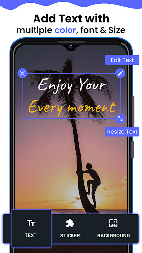 Quickly change the background ratio without cropping your image. Change the background with a large collection of colors, images, gradients. Text On Photo also lets you change the background image from the gallery to make your photos more glorious.