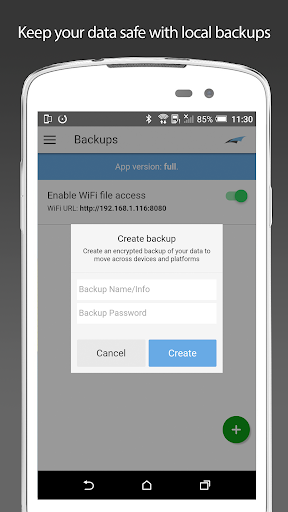 - Local backups to keep your data safe all the time. No need for creating accounts. Move data across devices and platforms.