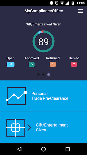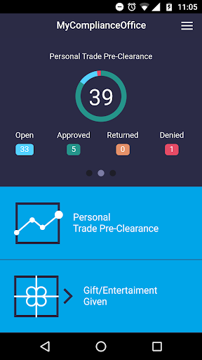 The MyComplianceOffice app for iPhone enables both employees and compliance officers to submit requests for approval from their iPhone. The compliance features available include: