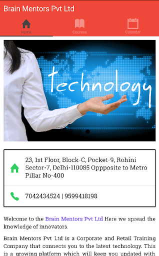 Brain Mentors Pvt Ltd . It is a Training Company , Provides Training on Various Latest Technologies This App Give You Detail About Brain Mentors Pvt Ltd and Course Provided By Brain Mentors Pvt Ltd. The Training Calendar of Brain Mentors Pvt Ltd.