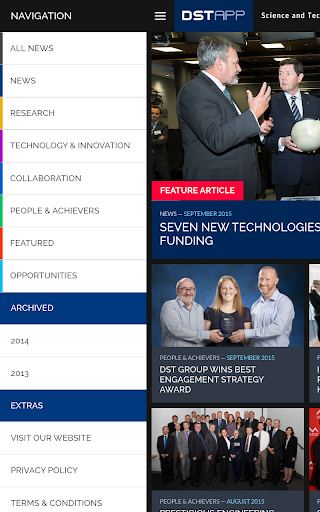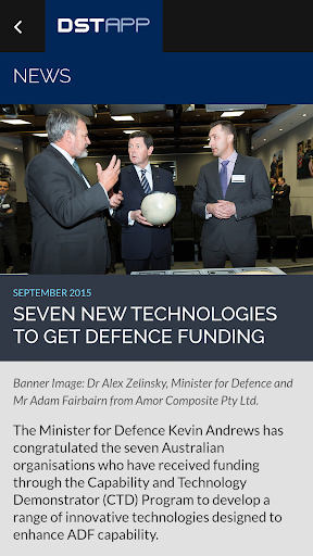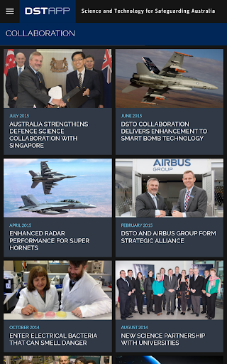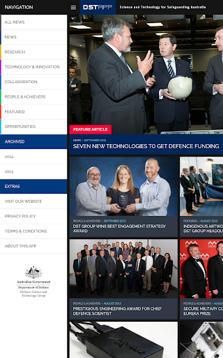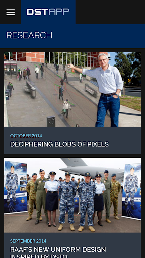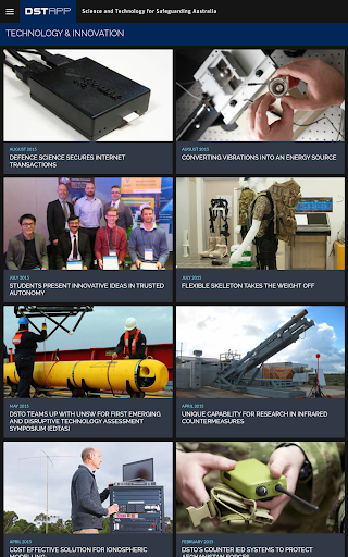 This app is a collection of current and recent news stories, achievements and information about DST Group's research activities in support of Defence and national security.