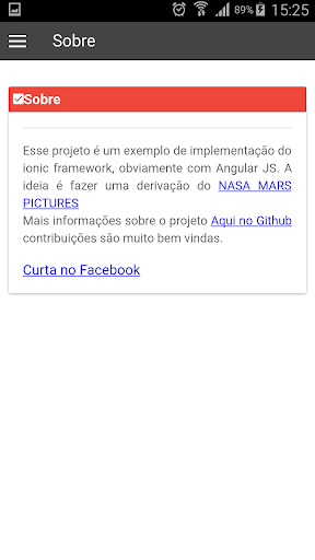 Mais informações sobre o projeto em https://github.com/joelgarciajr84/ionic-app-fotos-de-marte no Github, contribuições são muito bem vindas.