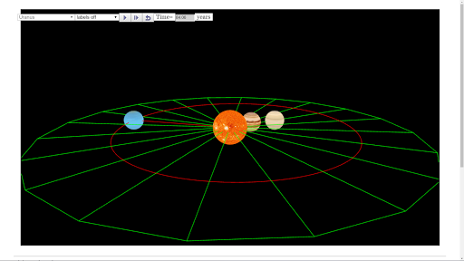 This 3D simulation allows for exploring of the Solar System for productive learning targeted at the data collection of period and distance away from the Sun.