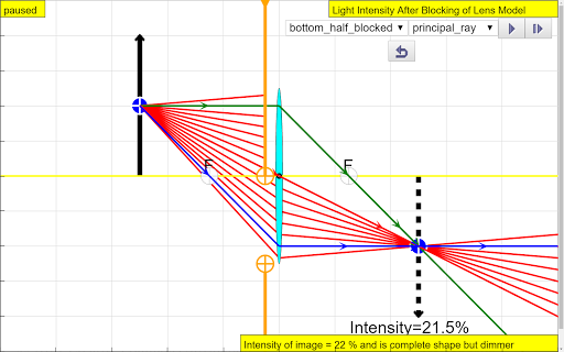 Blocking part of the lens surface would block the corresponding part of the image. With this app, it is easier to explain and understand.