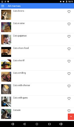 * View a list of all your stored memes, you can share them or delete them if you do not need them anymore.