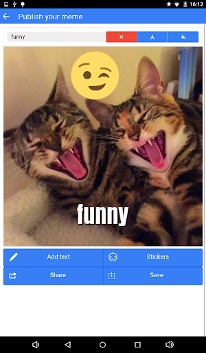 * Share all your memes on Facebook, Twitter, Whatsapp or wherever you like.