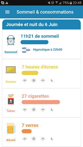 Nous recommandons d’utiliser l’application une fois par jour en début de journée pour renseigner le sommeil et les évènements de la veille ou en fin de journée si vous ne renseigner que vos comportements. Pour vous aider vous pouvez programmer une notification qui vous rappellera de saisir les informations relatives à la journée et à la nuit précédente.
