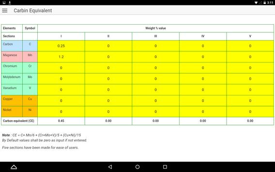 Carbon equivalent calculation