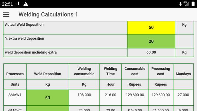 Weld deposition weight calculation of other materials also feasible by change of respective material density.