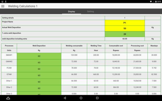 welding consumable cost calculation