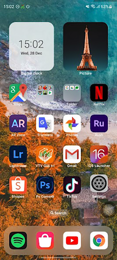 This iLauncher - iOS 15 Launcher, provides preconfigured 20 themes which gives an aesthetic iphone look. User must try the dark mode and light mode of the theme.