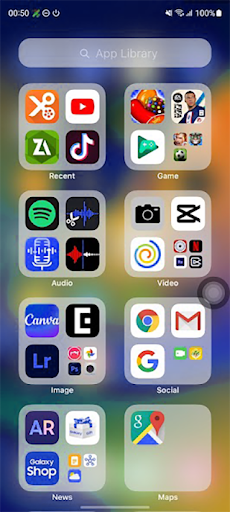 In Launcher - iOS 16 Launcher, you can drag and drop the app to another app to create a folder. The folder is design like iOS interface with rounded content area and blur effect behind. If you have a lot of apps, and want to Group them then you can put your related apps in folders.