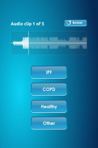 Idiopathic pulmonary fibrosis (IPF) is a chronic, progressive form of interstitial lung disease and the unique Velcro crackles commonly seen in patients with IPF are an indicator that further investigation is required. The IPF Sound Challenge allows you to practice identifying various respiratory conditions, including IPF. After each recording you will be asked to identify the patient’s condition from four options. The correct answer will be displayed as well as an option to listen to that sound again or continue on to the next sound. Your overall score will be presented as a percentage at the end.
