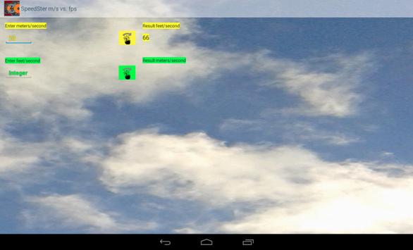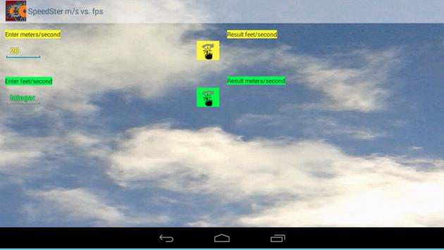 Simple and fast in use when you need to convert a unit of speed, from meters per second to feet per second or from feet per second to meters per second, with a simple graphical user interface.