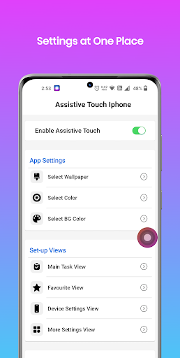 - Customize Main Task View, Device Settings View and More Settings View with Iphone Assistive Touch IOS 17.