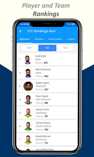 🎖 ICC ODI, Test and T20I team and player rankings.