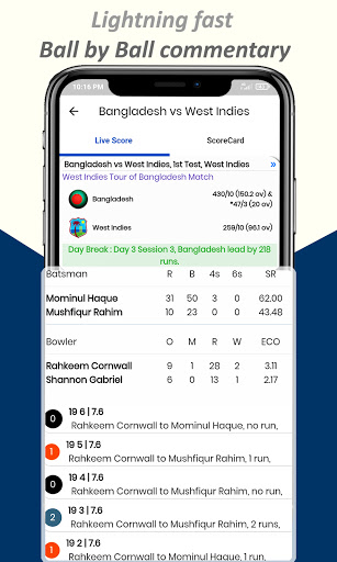 🏏 Fast and accurate live score updates with insightful ball-by-ball commentary with graphical highlights on one of the best and fresh cricket apps.