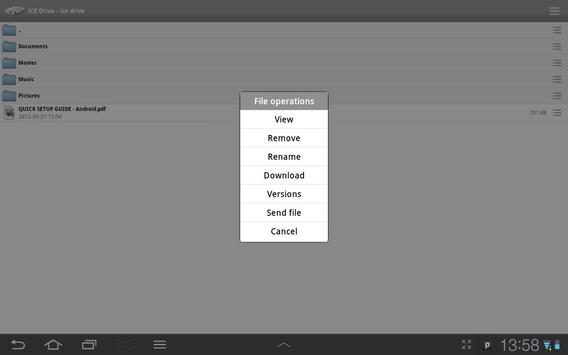 ICE-Drive stands for the “Ippany Cloud Extender-Drive“. The first easy to use and install on premise file access and collaboration solution where data is kept safe behind your own firewall. ICE-drive for Android lets you: