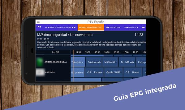 Nombre del canal, logo y Guia EPG con nombre del programa que se visualiza.