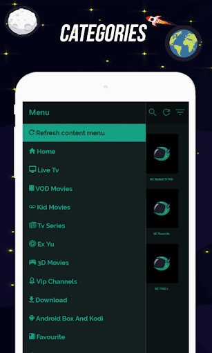 watch your favorite movies, series,animation , manga series shows and live sports - anytime, anywhere and on any device. It can be used at Smartphones, Tablets, TV Boxes, PC(Soon). Iptv Space is a subscriber’s interface for accessing VOD and Live Channel